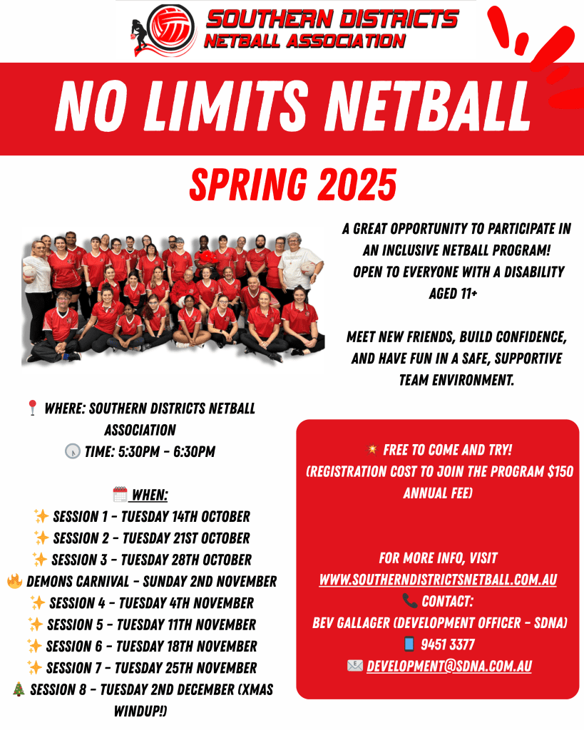 Contact our No Limits Netball Coordinator – Bev Gallager